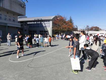 高学年は跳ぶ子に合わせてなわを回したり、波にしたり、みんなが跳べるように工夫していました。