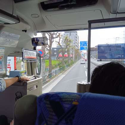 環八に入りました。もうすぐ到着します。お世話になった添乗員の高ちゃんのお話を聞いています。