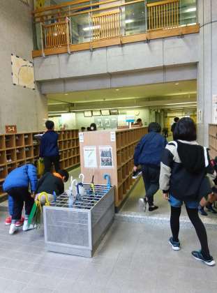 探検ボードの片付けをしています。
