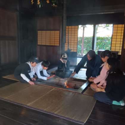囲炉裏の見学をしています。
