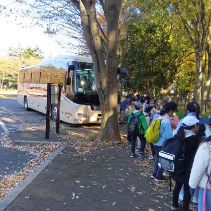 バスに乗って学校に帰ります。
