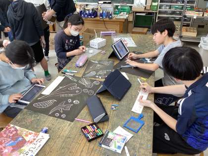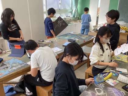 1月31日(金)3・4校時、5年3組の子供たちは図画工作の学習に取り組みました。この日は、3学期になって製作してきた「深海魚」の完成。チョークと修正液と黒画用紙を使って、すてきな作品を仕上げていました。見ていると、海の底にいるような気分になりました。