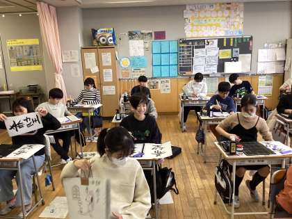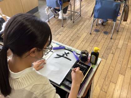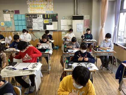 書き初めを終えて、子供たちは一段と集中力が増し、「ていねいに」「大きく」「力強く」書いていました。出来上がった作品を見て、子供たち同士で感想を伝え合う姿もすてきでした。がんばりましたね。