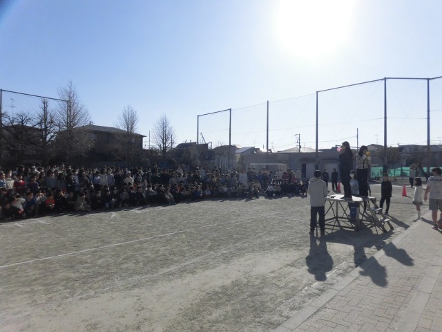 結果は、なわとびは集会委員、風船とリレーは先生が勝ちました。今年度の児童集会も今日が最後です。集会委員のみなさん、いつも楽しい企画を考えてくれて、ありがとう!!