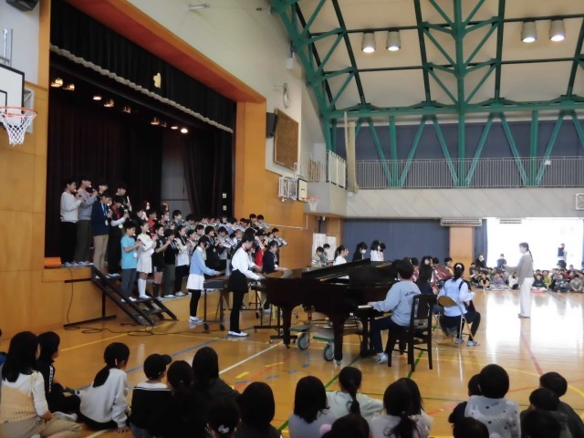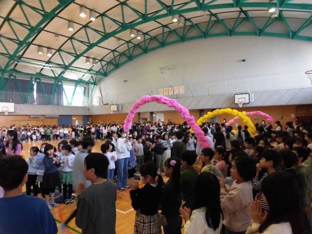 右:6年生が退場します。全校でとてもよい時間を過ごすことができました。