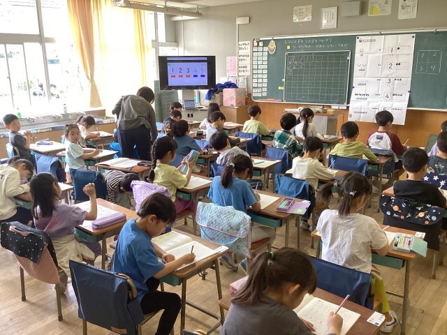 4月17日(木)1校時、1年生の子どもたちは算数の学習に取り組みました。5までの数について学び、先生からの問いかけにも意欲的に答えたり、数を数えていたりしました。集中して頑張る姿、すてきです。