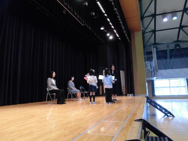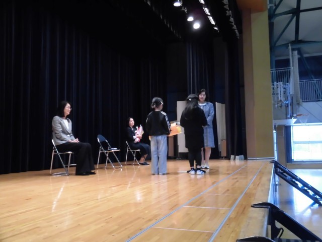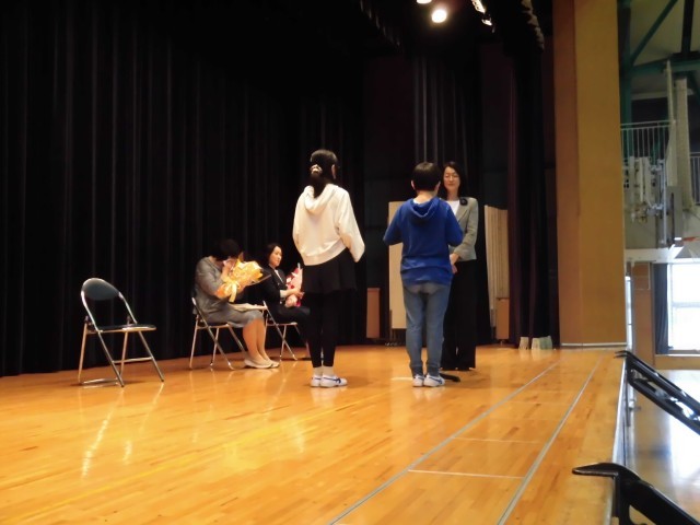 代表児童が感謝の言葉の発表、花束贈呈をしました。