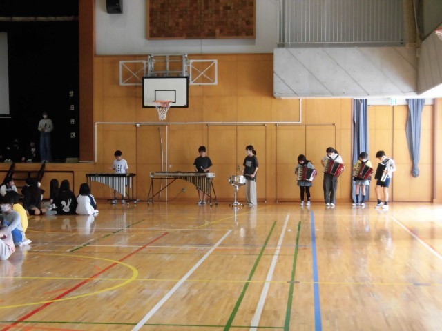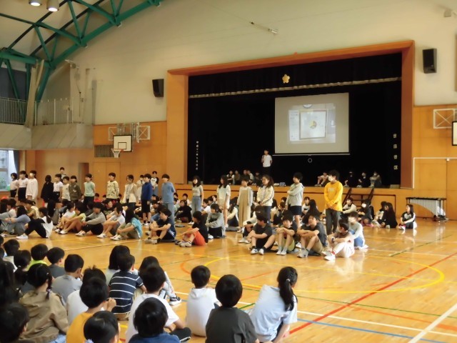 写真で説明したり、クイズ、体でじゃんけん、楽器演奏など、それぞれの委員会の発表が工夫されていて、とても楽しかったです。