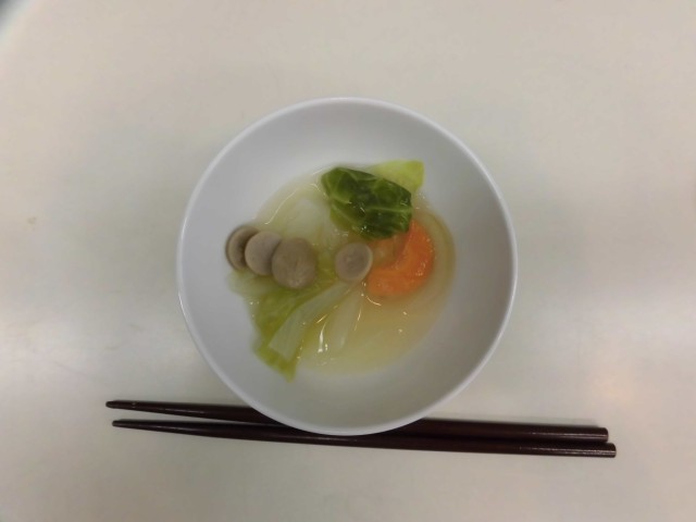 5年生は、初めての調理実習で「ポトフ」を作りました。写真はおすそわけしてもらったポトフです。
