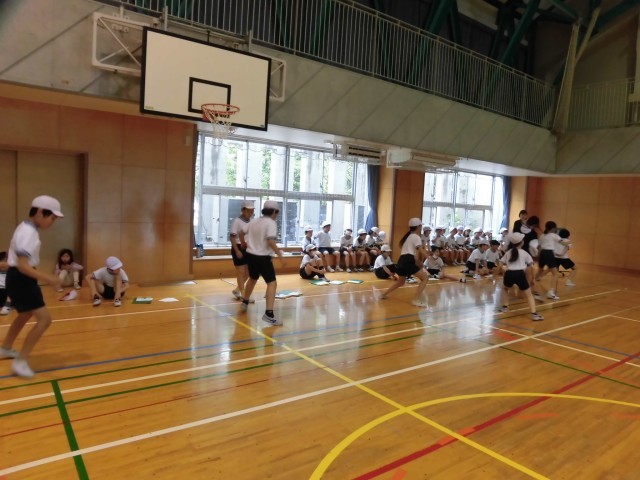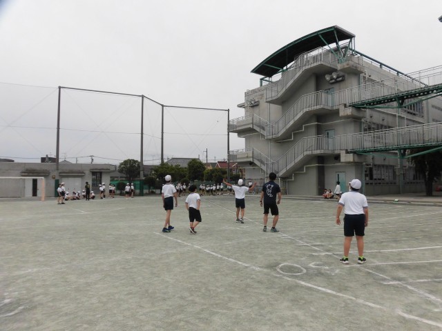 今日は、体力テストを行っています。写真は反復横とびとソフトボール投げの様子です。高学年が下学年の測定のお手伝いをしてくれています。