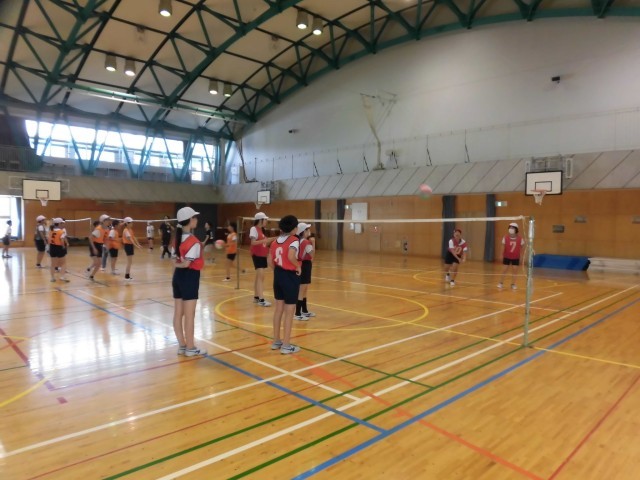6年生は「八小ガンバレー」(ネット型ボール運動)に取り組んでいます。