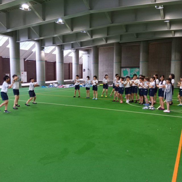 マスのつかみ取りはクラスごとに行うので、待っている間にクラスレクをやっています。