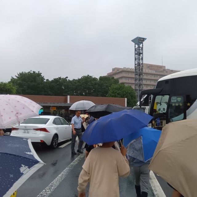 三芳パーキングエリアでトイレ休憩です。バスの駐車場がとても混んでいます。