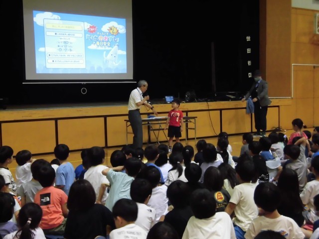 成城警察署スクールサポーターさんと、八幡山駐在所武藤さんを講師にお迎えし、セーフティ教室を行いました。