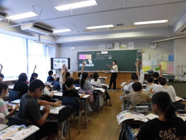 農家の人たちが安全でおいしい米を作るために工夫していることについて調べました。子どもたちは「調べるための時間がもっとほしい!」というくらい、積極的に取り組んでいました。5年生は自分たちでも稲を育てているので、アイガモ農法のことを知り「学校の田んぼにもアイガモを泳がせてみたい」と言っている子もいました。