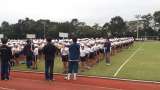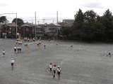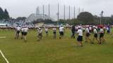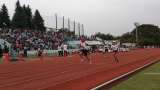 女子の100mから競技開始です。みんながんばってます。ポツポツ雨が降ってきました...