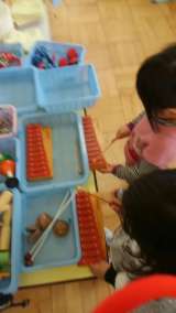 年長さんの音楽会の練習は、廊下の楽器置き場でも個人練習をしています。いろいろな...