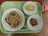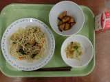献立は「和風スパゲッティ、大根とひじきのサラダ、スイートポテト、牛乳」です。 ...