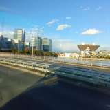 レインボーブリッジを渡ります。ガイドさんのクイズは「乗り物クイズ」中です。