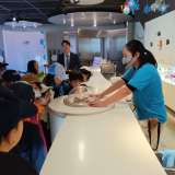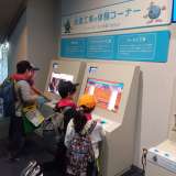 いろいろな実験ができるコーナーです。 左:霧の空気砲 右:大きなシャボン玉に入れ...