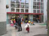 1年1組の教室では、クリスマスカード作りをしていました。飛び出す仕掛けを工夫して...