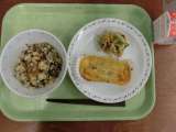 献立は「豆入りひじきごはん、切干し大根の卵焼き、おひたし、牛乳」です。 *...