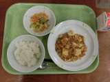 献立は「ごはん、麻婆豆腐、白菜の中華サラダ、牛乳」です。 *食材産地***...