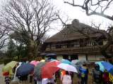次大夫堀公園。雨が本降りとなりました。お弁当は学校に戻って食べることにします。