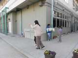 今週は1年生が担当です。写真は1階昇降口前で挨拶をしている1年生の様子です。
