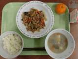 献立は「ごはん、きんぴら煮、三平汁、みかん、牛乳」です。 *食材産地***...