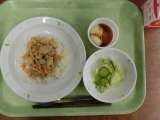 献立は「チリビーンズライス、もやしとツナのサラダ、りんご 牛乳」です。 *...