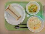 献立は「ジャムサンド、牛乳、コーンシチュー、キャベツのハニードレッシングかけ」...