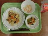 献立は「家常豆腐丼、ナムル、フルーツヨーグルト、牛乳」です。 *食材産地*...