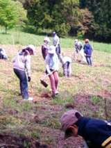 植林作業中です。15年くらいで立派な木に育つとのこと。いい記念になりました。