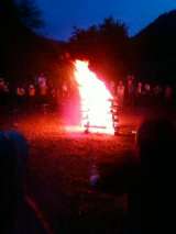 キャンプファイアーが始まりました。火の神と弟子による点火で一気に盛り上がりました...