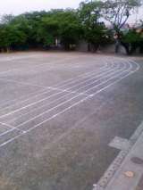 29日、上北沢小学校が本校の校庭で運動会をします。昨日、上北沢小の先生たちが準備...