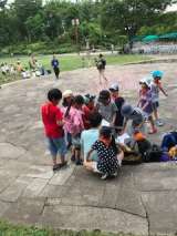 お弁当の後は、これまた楽しみにしていた、水遊びの時間です。 先生の説明を聞き、ル...