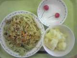 本日の給食です。 冷し中華 じゃがいものバター焼き さくらんぼ 牛乳 旬の果...