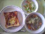 本日の給食です。 ピザトースト ポトフ ピクルス 牛乳