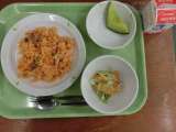 献立は「チキンライス、パリパリサラダ、メロン、牛乳」です。 パリパリサラダ...