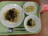 献立は「和風スパゲッティ、じゃこサラダ、ポテトクリーム焼き、牛乳」です。 *...