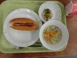 献立は「ウインナーサンド、ヌードルスープ、ビーンズサラダ、牛乳」です。 *...
