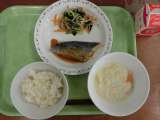 献立は「ごはん、魚の梅肉焼き、海藻と野菜の和え物、豆乳入りみそ汁、牛乳」です。 ...
