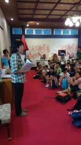 6年生の日光林間学園のキャンプファイヤーは、始まりの劇と八幡山小ソーランでスタ...