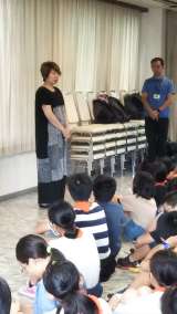 3日目の朝会です。小雨のため、ホールで行いました。子どもたちは、皆元気です。「最...