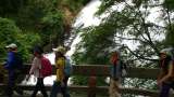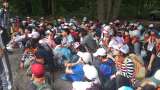 湯ノ湖を半周して湯滝に到着しました。歩いたらだんだん暑くなってきました。いよいよ...