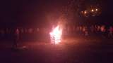 キャンプファイアーが始まりました。が、雨がぼつぼつ。遠くにかみなりも鳴っています...