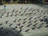 4時間目、4年生は校庭で運動会の練習。「八小ソーラン」も衣装を身にまとっての仕上...
