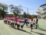 最後に全校競技の大玉送りの練習をしました。赤白学年ごとに、自分の立ち位置を確認し...
