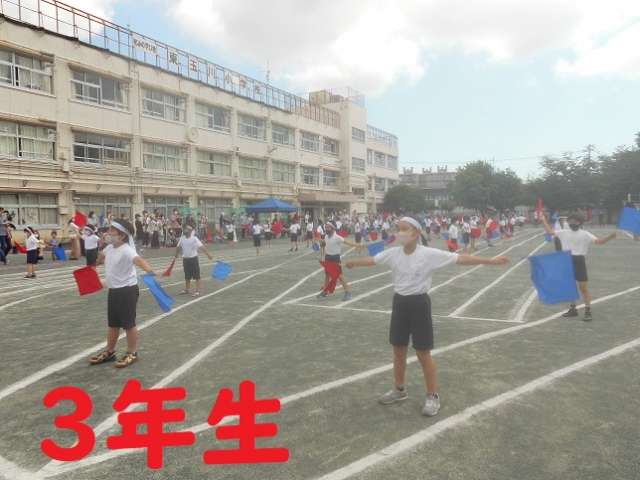 もともと運動会は、子ども同士が学ぶ場でもあります。互いの活動を見ながら、低学年の子どもたちは、高学年のおにいさん・おねえさんの活躍を見て、未来の自分を想像します。高学年の子どもたちは、低学年の様子を見て、自分のこれまでの成長を知り、未来に向かう気持ちを育てます。
